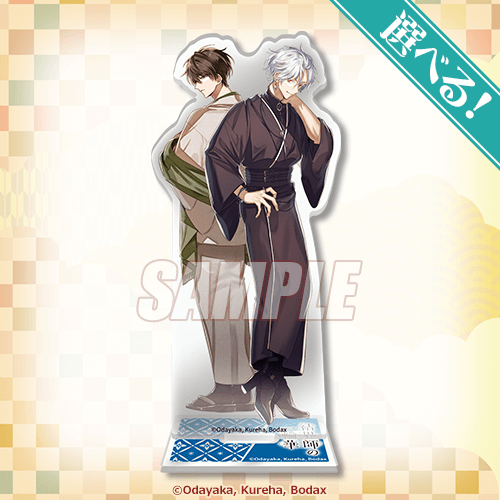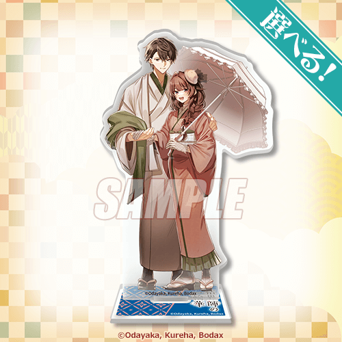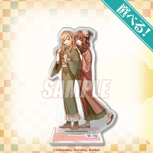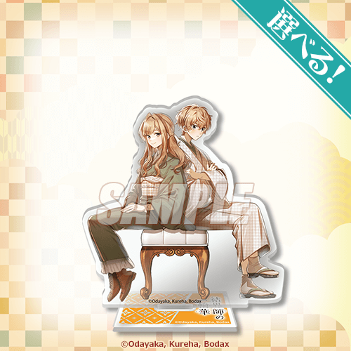 おだやか先生描き下ろしイラストを使用したキャラクターがペアになったアクリルスタンドです!当選後に絵柄をお選びいただけます。