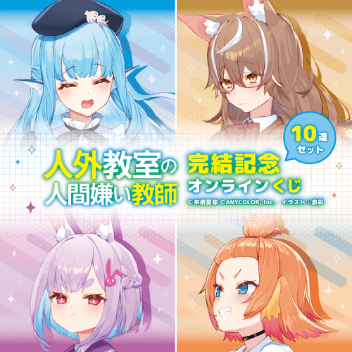 【10連セット】をご購入いただいたお客様には「アクリルカード」をもれなく1枚プレゼント!! ※期間により絵柄は異なります。 ※全10種、ランダムでの配布となります。 【対象期間】 ■水月鏡花/尾々守一咲/羽根田トバリ/龍崎カリン/若葉葵 4月7日(火)12:00~4月28日(火)11:59